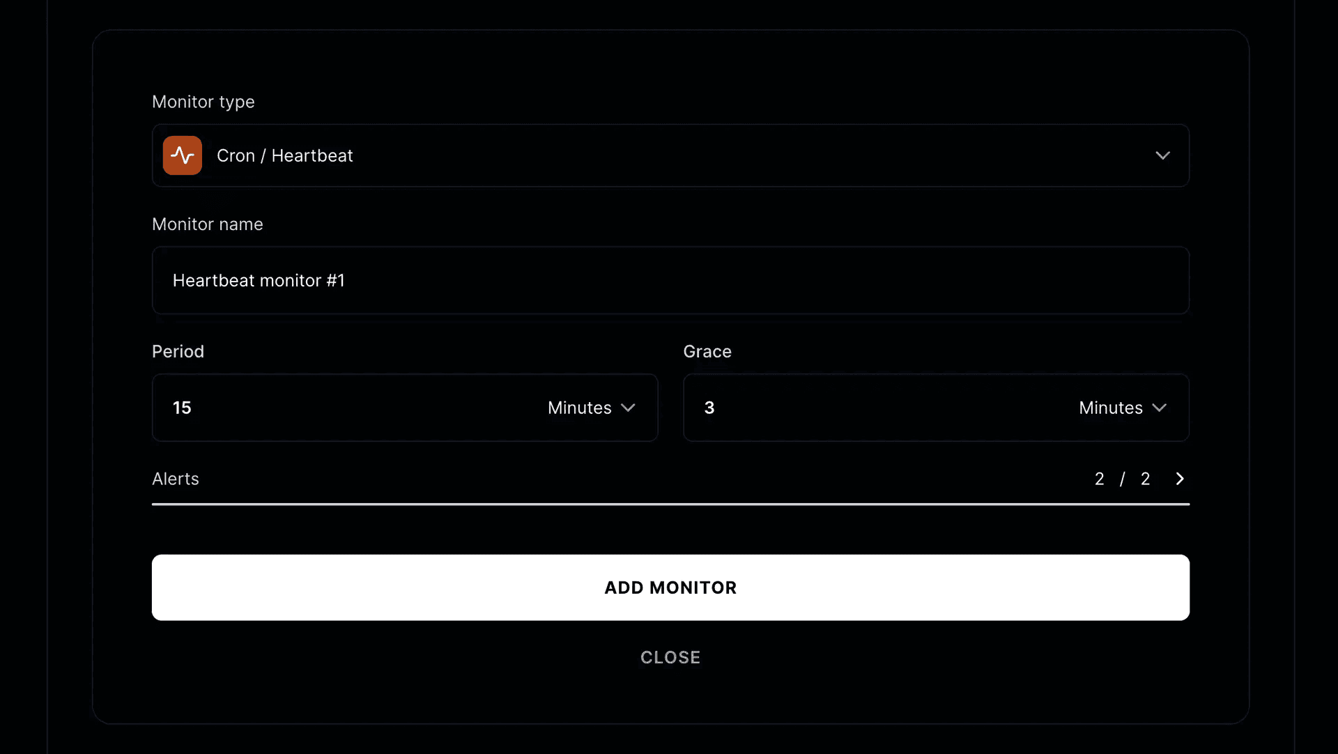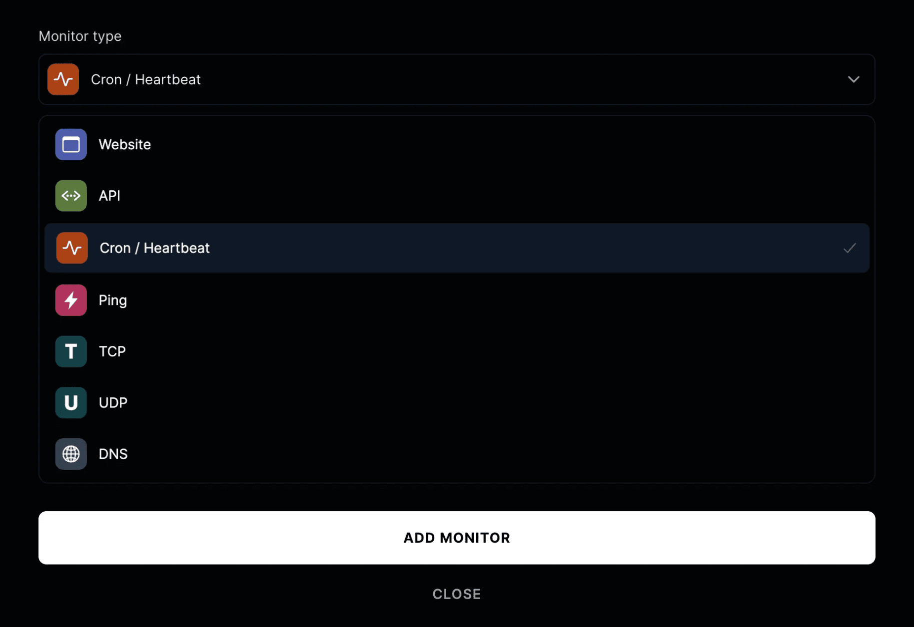 In your Instatus dashboard, go to your project, then Monitors, then Add Monitor. Select Cron/Heartbeat as the monitor type. Instatus generates a unique URL for this job: