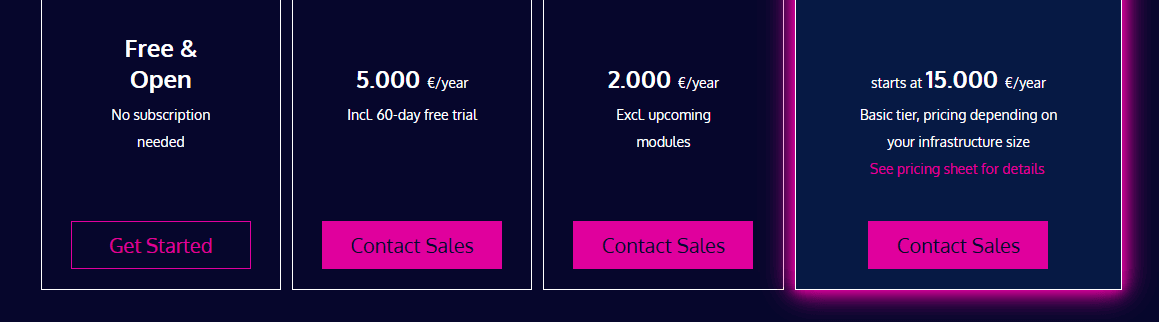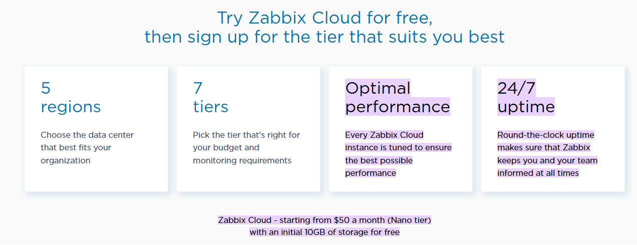 Zabbix is free and open-source, with all features in a single version. Costs only arise for managed cloud services, professional support, or consulting.