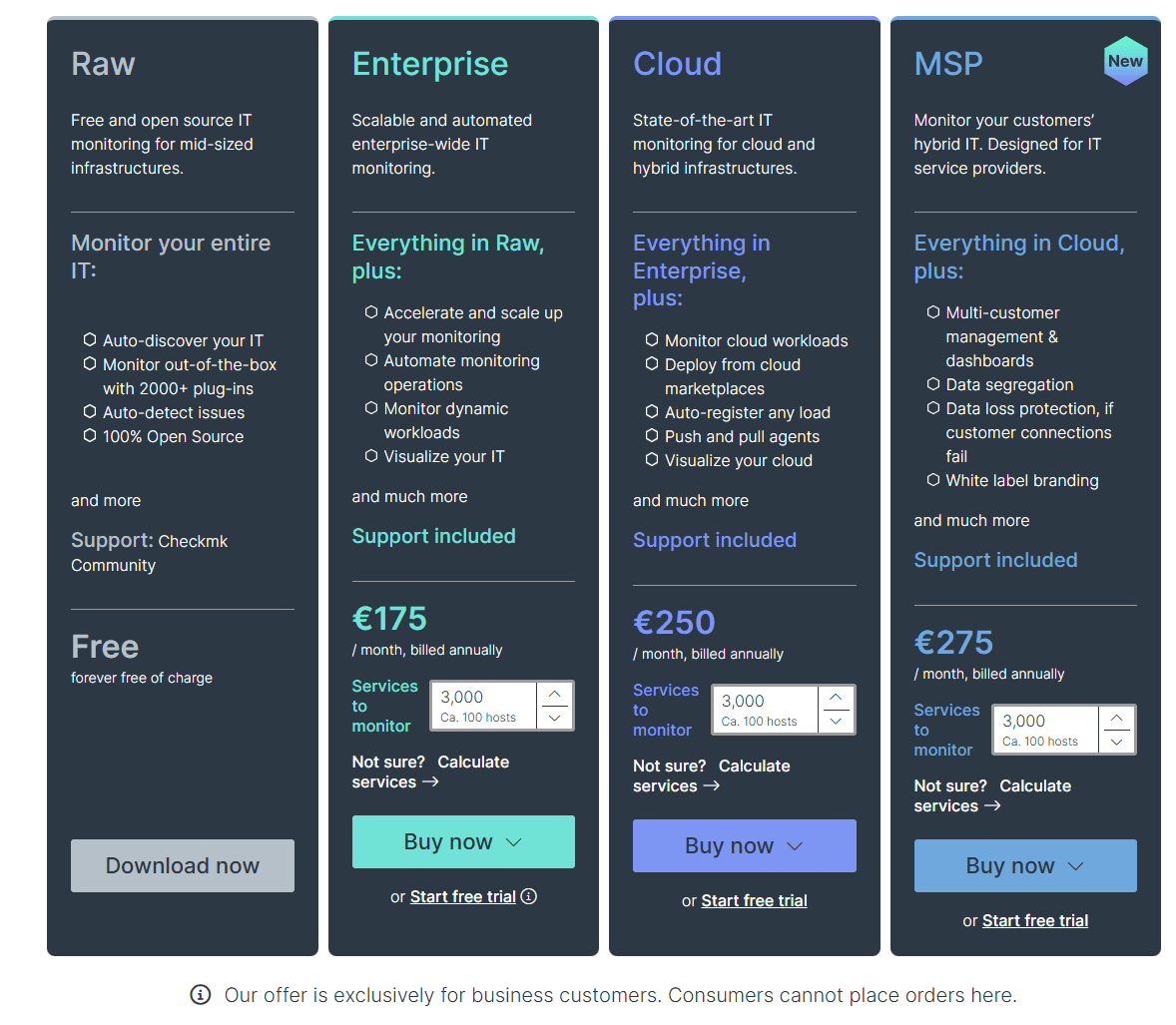 | Checkmk | Auto-discovery | Self-hosted/SaaS | €175/month | Yes | 4-6 hours |