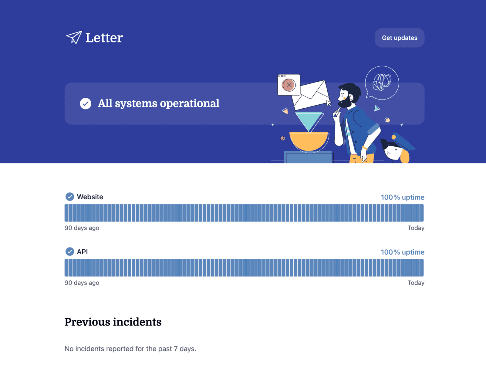 Instatus empowers you to showcase your brand identity with a highly customizable and branding-friendly status page. Tailor the appearance of your status page by incorporating your organization's colors, logos, and domains, ensuring a consistent and personalized representation of your brand.